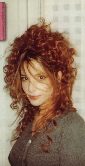 Photo prise lors du changement de coiffure de Mylène (avec pause d’extensions) qui va porter une chevelure frisée pour la promotion de l’album Innamoramento et du single L’Âme-Stram-Gram.