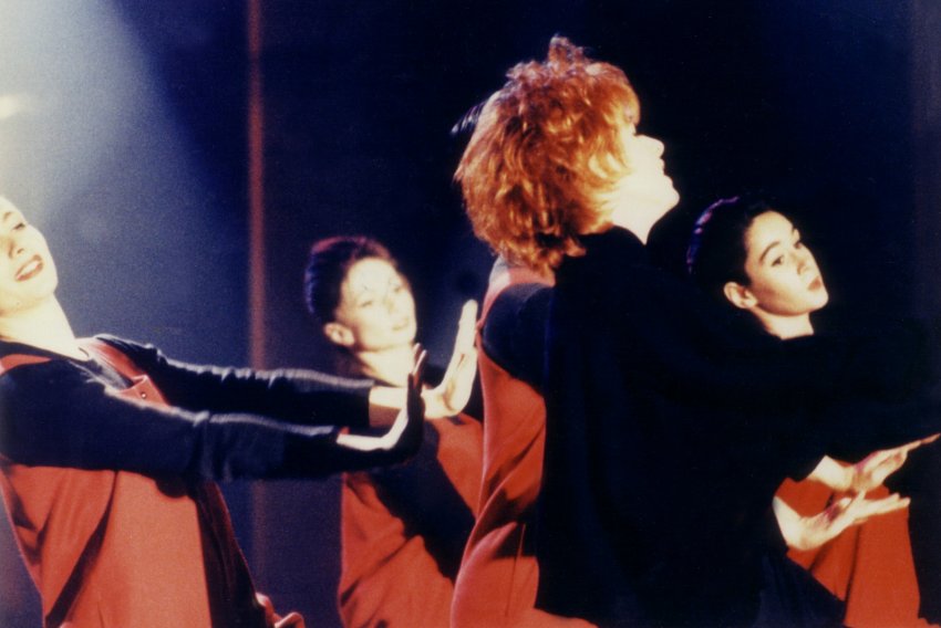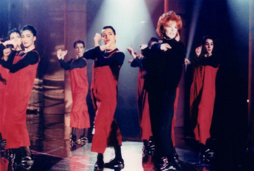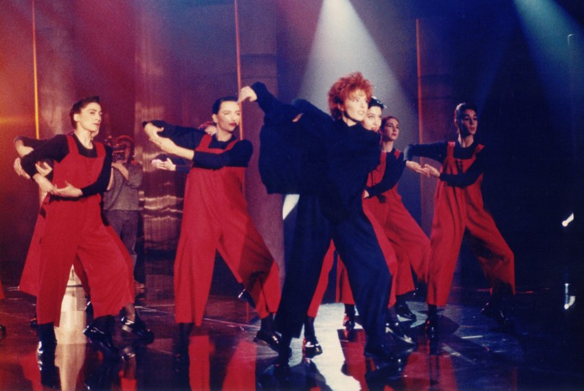 Mylène interprète Je t'aime mélancolie pour la première fois à la télévision entourée par dix danseuses